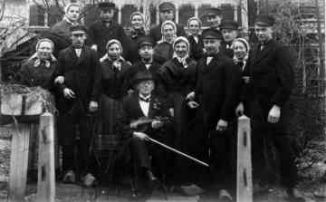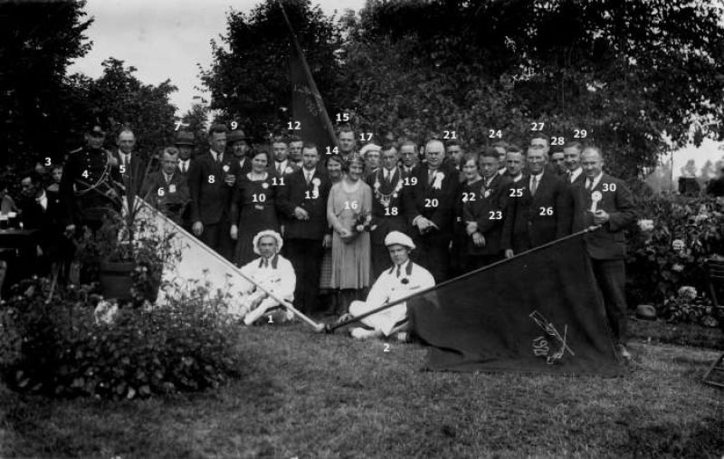 Het schutterskoningspaar met familie en kermisbestuur in 1932
