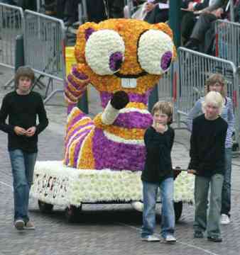 Bloemencorso Kleine wagens. voorstelling: Fantasierijke rups. Ontwerpers: Wout W