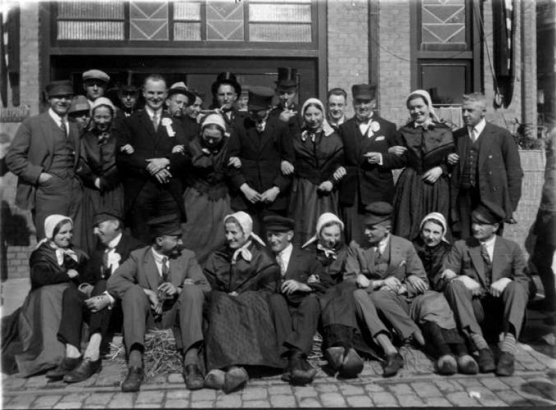 Buren uit de Rapenburgsestraat. Waarschijnlijk tijdens de Kermis (1947/1948/1949