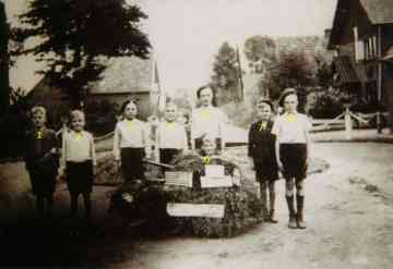 Viering van de bevrijding eind augustus 1945 met een allegorische optocht. Hier