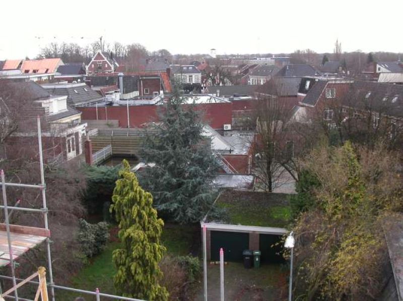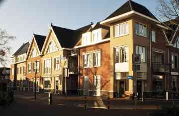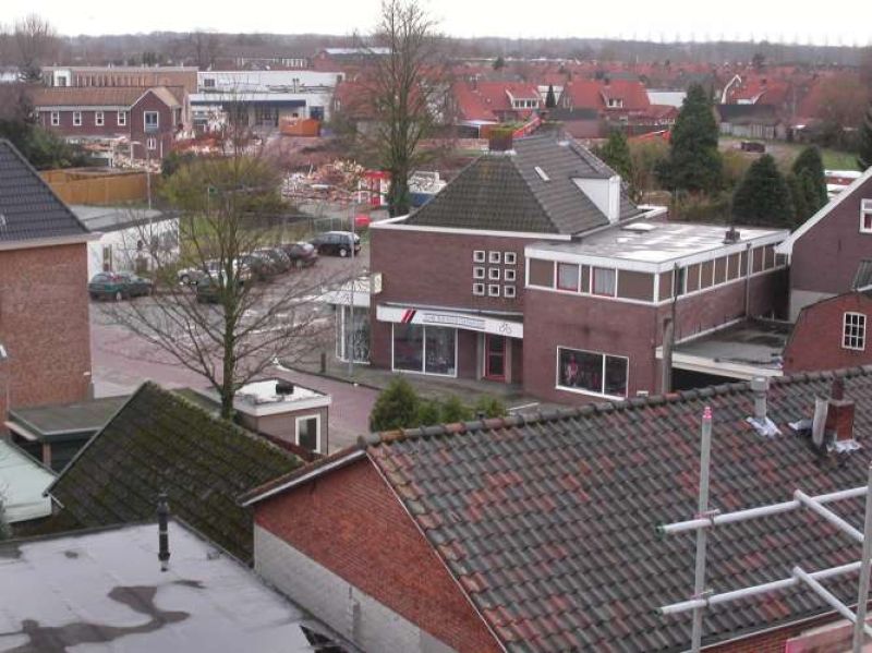 Appartementencomplex "De Rapenburgh" met winkels in aanbouw. Deze foto is identi