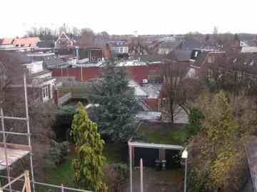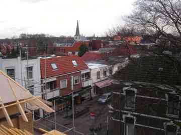 Appartementencomplex "De Rapenburgh" met winkels in aanbouw. Op de foto het uitz