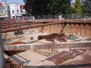 Appartementencomplex "De Rapenburgh" met winkels in aanbouw. Deze foto is genome