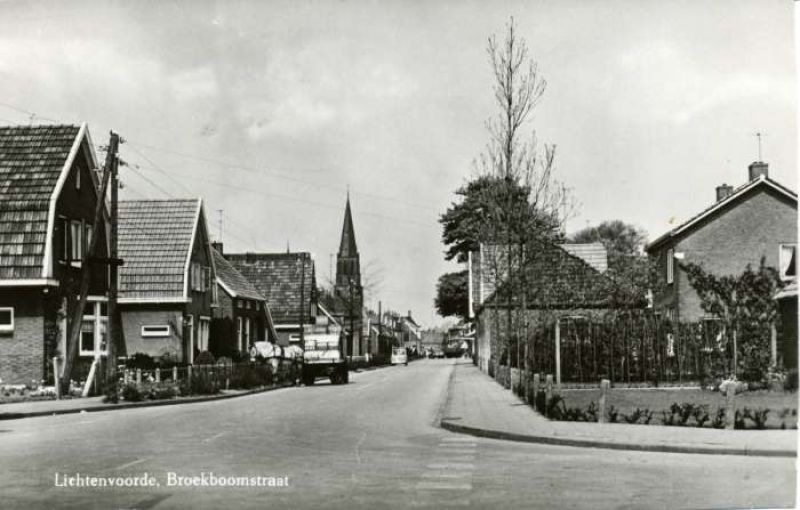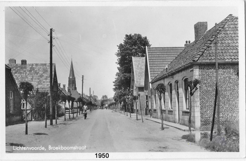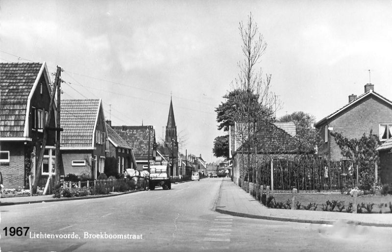 Broekboomstraat richting De Koppelpaarden. We zien links de eerste Lichtenvoords