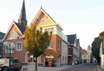 Hoek Broekboomstraat/Molendijk. In het pand van uitzendbureau "Start" zat vroege