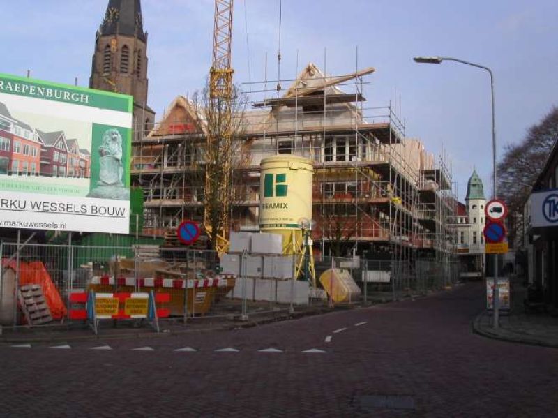 Appartementencomplex "De Rapenburgh" met winkel in aanbouw. Deze foto is gemaakt