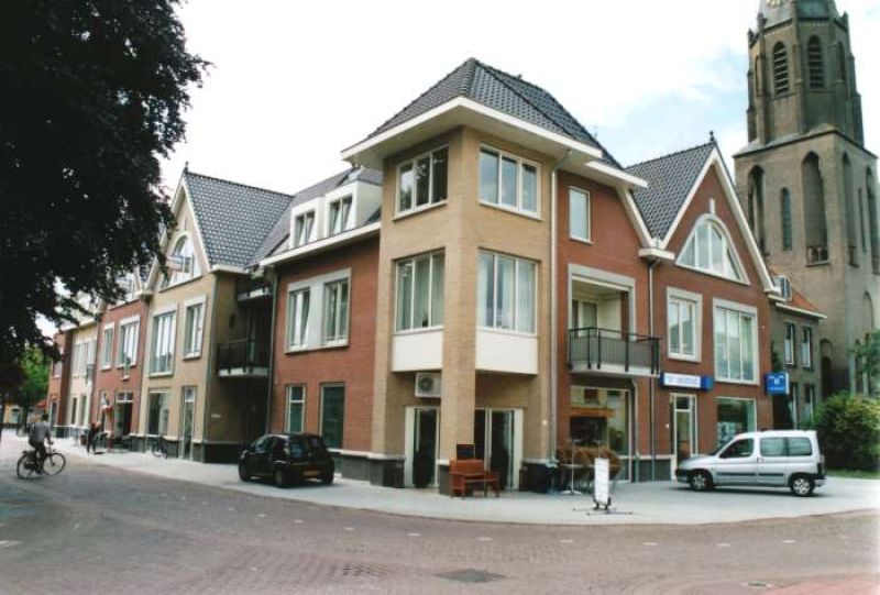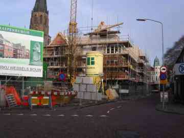 Appartementencomplex "De Rapenburgh" met winkels in aanbouw . Meer informatie zi