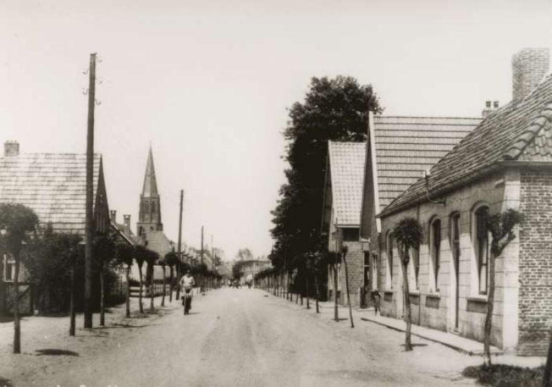 De Broekboomstraat te Lichtenvoorde in 1950 gezien richting centrum. Op de fiets