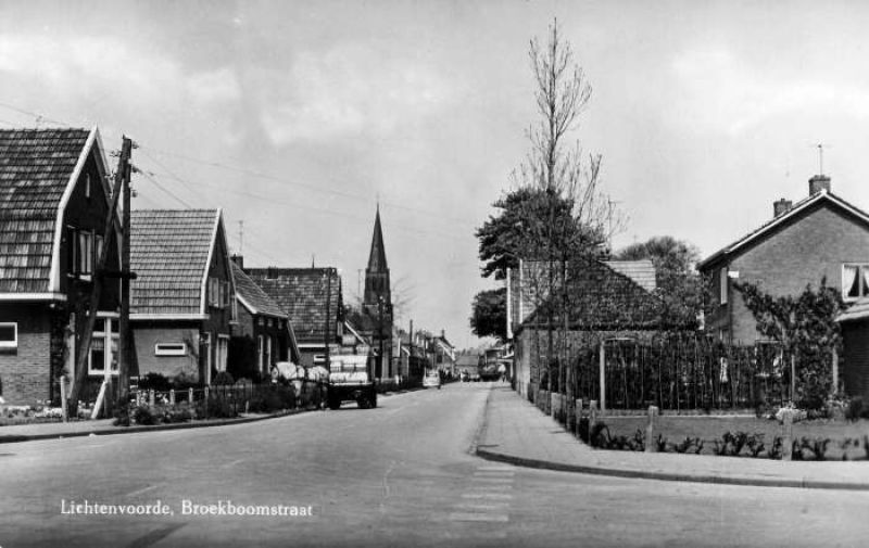 De Broekboomstraat te Lichtenvoorde omstreeks 1960, gezien vanaf het kruispunt m