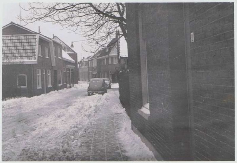 De Broekboomstraat in de strenge winter van `63. Vanaf links de woningen van Kui