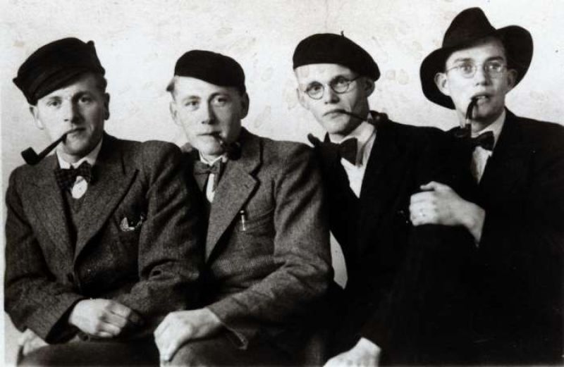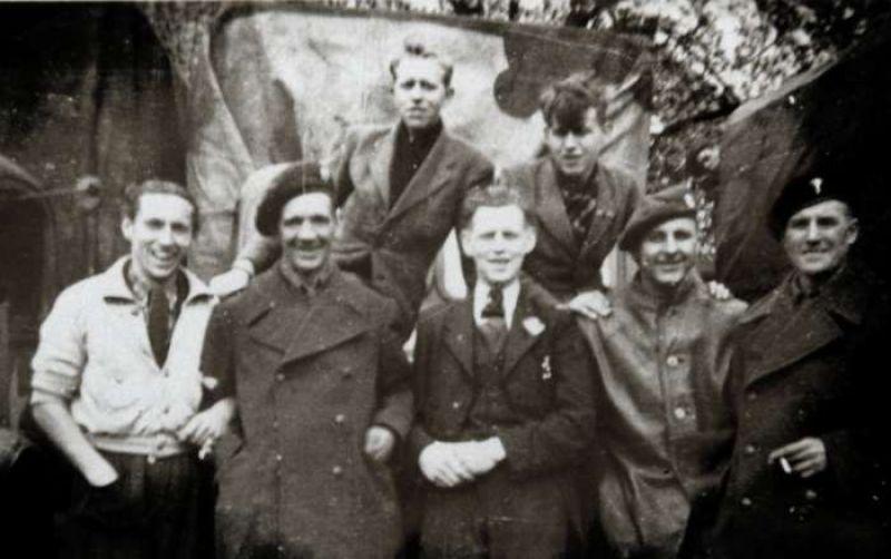 De jongens Eskes , met onderduiker, op de foto met Engelse soldaten. 1. Onderdui