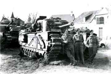 Op 31-03-1945 staan tijdens de bevrijding Churchill-tanks bij de Coöp Boterfabr