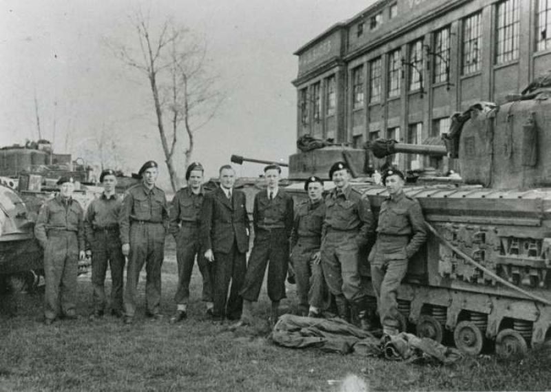 Een Churchill-tank op het voorterrein van Hulshof Verenigde Fabrieken (Herwalt)
