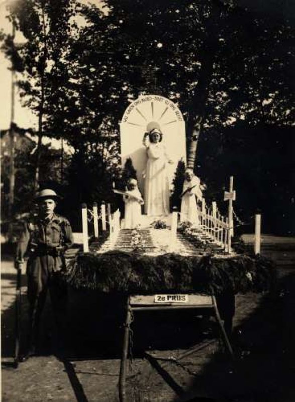 Viering van de bevrijding eind augustus 1945 met een allegorische optocht. Hier