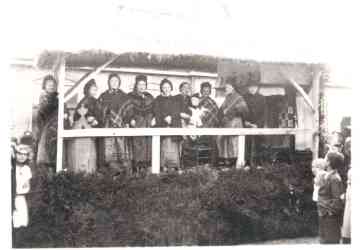 Een toneelgroep tijdens het bevrijdingsfeest in Vragender in augustus 1945