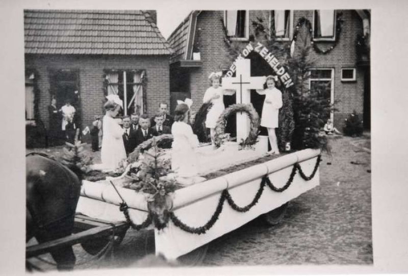 Praalwagen uit de optocht van het bevrijdingsfeest in Vragender in augustus 1945