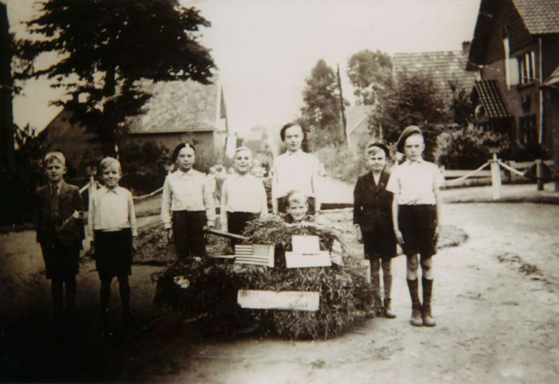 Bevrijdingsoptocht in Vragender in 1945. De wagen is van van het Veld-Ende. 1. 2