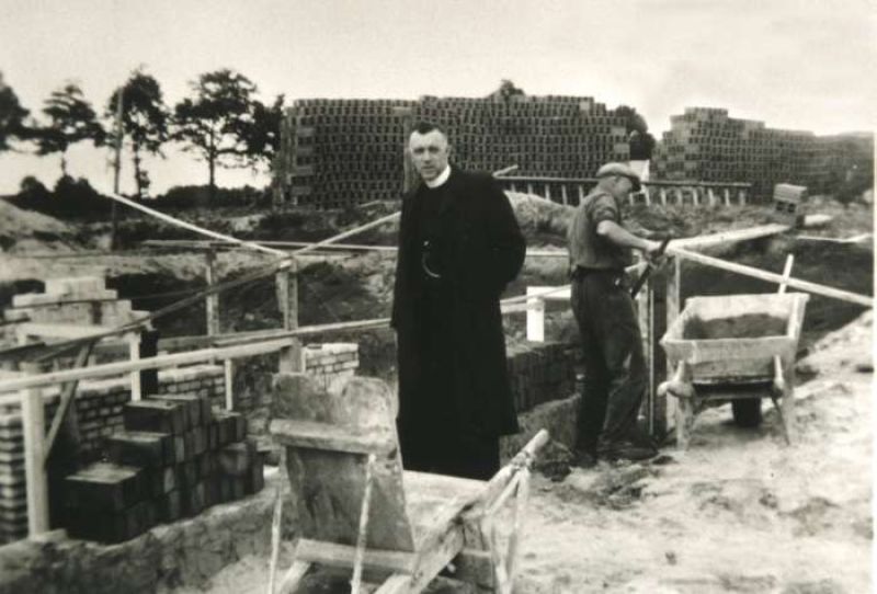 Op 8 oktober 1945 werd W. Mientjes benoemd tot bouwpastoor van de nieuwe parochie “Christus Koning” in Lievelde. Hij huurde de oude pannenfabriek van de wed. Geers aan de Lievelderweg voor f 400,- per jaar. Onder leiding van aannemer H. te Brake in Lievelde werd de pannenfabriek verbouwd tot een noodkerk. De eerste viering daar was zondag 23 december 1945 om 7.00 uur.