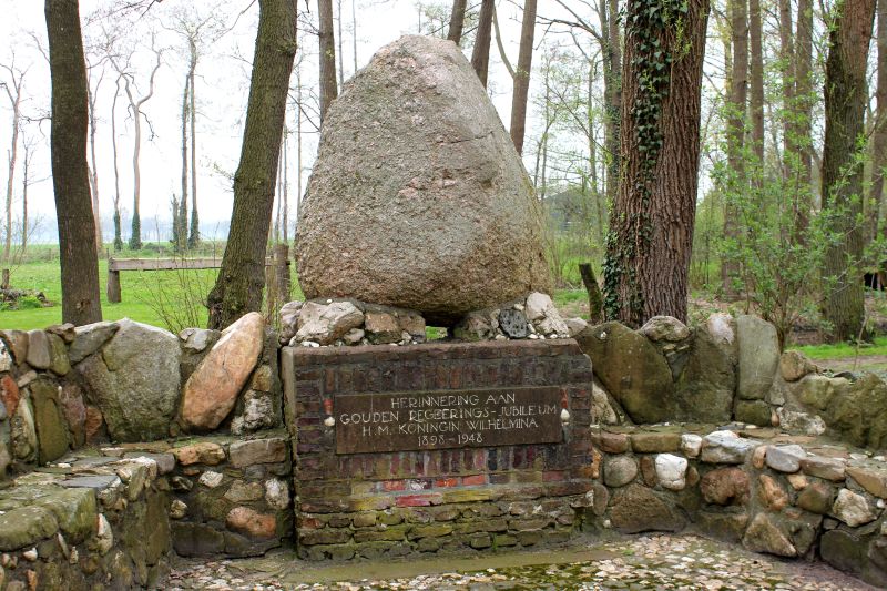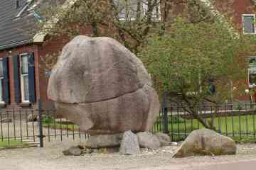 Bij de foto: Grote steen op de Markt. Deze enorme kei is tijdens de ijstijden door het landijs naar de Tongerlose heide bij Vragender meegevoerd. In 1865 is hij ter gelegenheid van het zilveren regeringsjubileum van Koning Willem III naar de Markt in Lichtenvoorde gesleept door 99 schoenmakers.