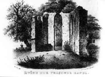 Een tekening van 1840 van de ruïne van de kapel aan de Kapelweg te Vragender.