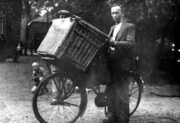 Bakkerij Lueb aan de Korte Rapunburgsestraat. Op de foto Jan Lueb met de transpo