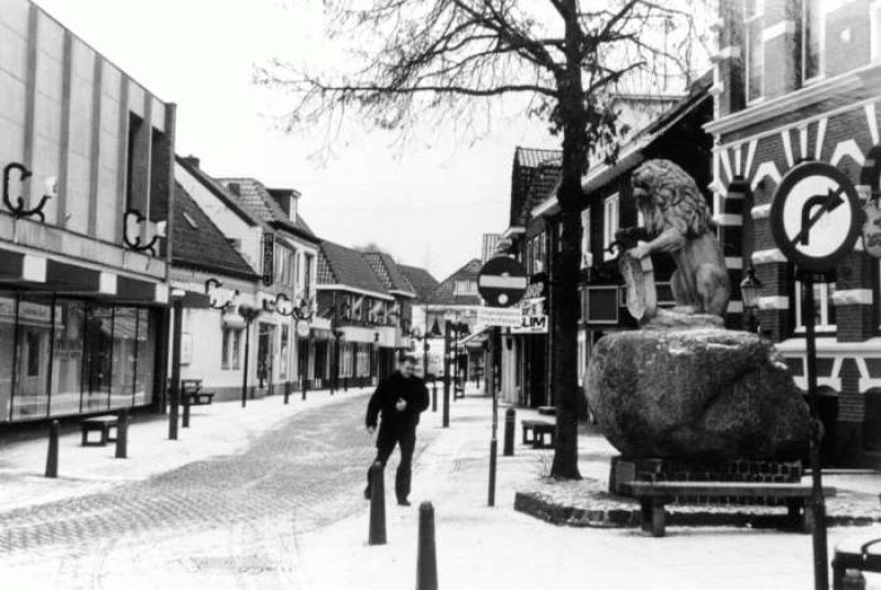 De Korte Rapenburgsestraat te Lichtenvoorde in januari 1997. Vlnr: de winkel van