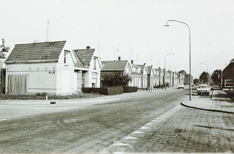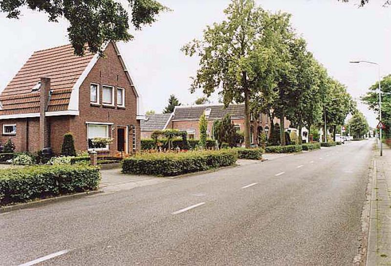 Straatbeeld vanaf kruispunt "Driehoek" van de Lievelderweg.