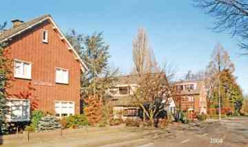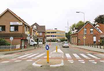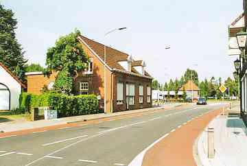 Lievelderweg vanaf kruispunt "De Driehoek". linkergebouw is de cafetaria van Lee