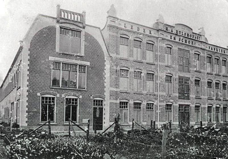 Hulshof Leder en schoen fabriek aan de Lievelderweg. Het linkergedeelte werd ge