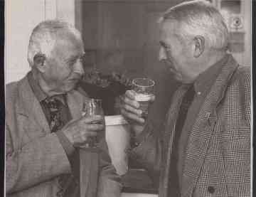 Norbert Kuijpers (links) en Bart Nieuwenhuis (rechts) drinken op hun gouden spel
