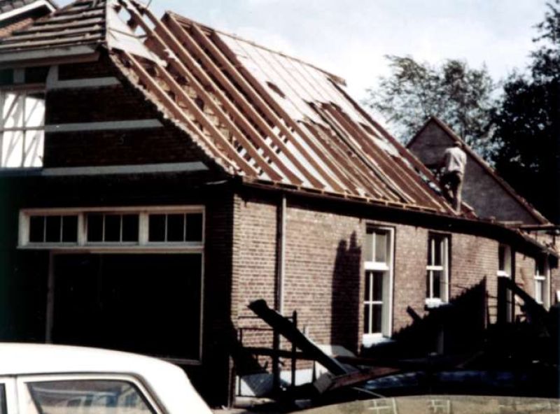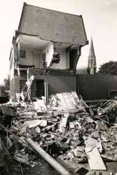De afbraak van de woning/winkel van Sterenborg (Paok) aan de Molendijk 3 in 1980
