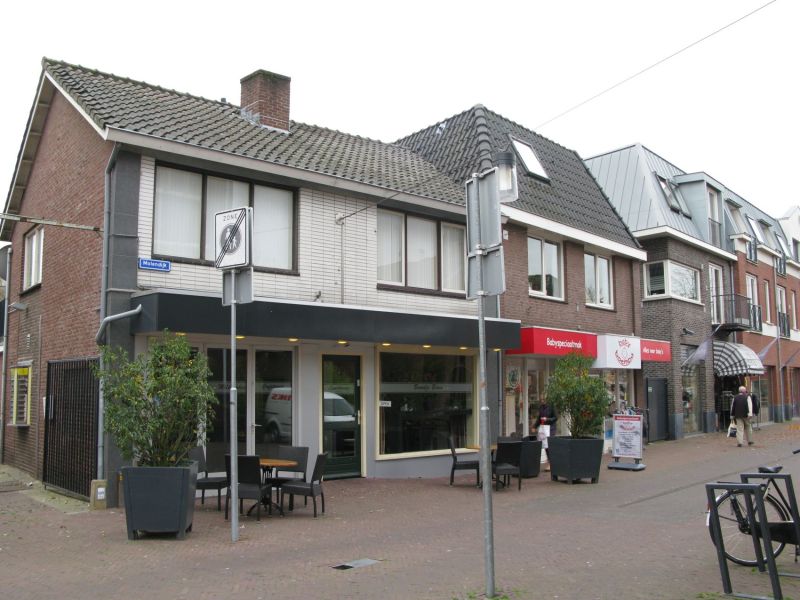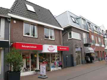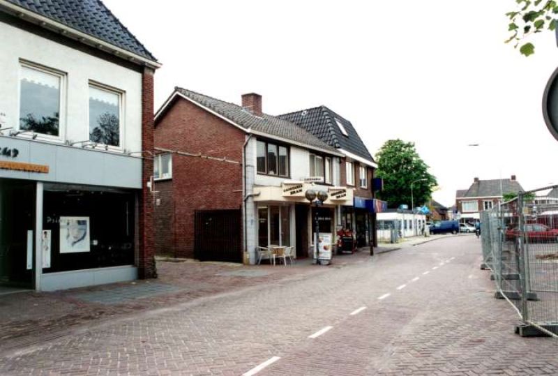 De Molendijk gezien vanaf de Markt te Lichtenvoorde. Vlnr: de Fotozaak `Primeur`