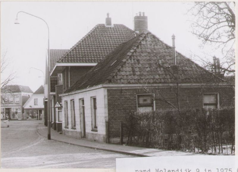 Daarom besloot de gemeenteraad de vier stukjes dijk aan te kopen en het pad te verharden. Oorspronkelijk was het plan om het wegdek met granietkeien ( data-start="1433" data-end="1447">kinderkoppen) te bestraten, maar vanwege de hoge kosten werd hiervan afgezien. In plaats daarvan kwam er een één meter breed middenpad van klinkers, terwijl de rest van het wegdek met veldkeien werd aangelegd. De Molendijk bleef lange tijd een smalle weg. Door de woningen aan weerszijden was verbreding niet mogelijk. In 1926 gaf weduwe J.H. Holkenborg echter aan dat zij haar woning desgewenst aan de gemeente wilde verkopen. De gemeenteraad besloot tot aankoop, maar omdat er nog andere ‘verkeersbelemmerende obstakels’ aan de Molendijk stonden die nog geen eigendom van de gemeente waren, mocht de weduwe tijdelijk blijven wonen tegen een vergoeding. Pas veel later, nadat de overige obstakels in gemeentelijk bezit waren gekomen, werd de woning afgebroken.