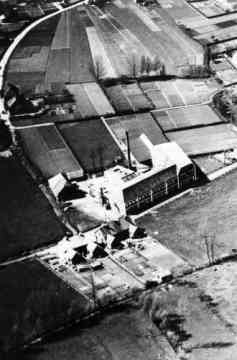 Luchtfoto van de schoenfabriek van H.B. Sterenborg
