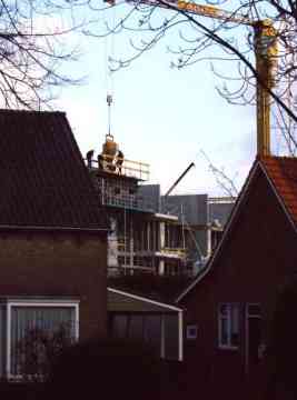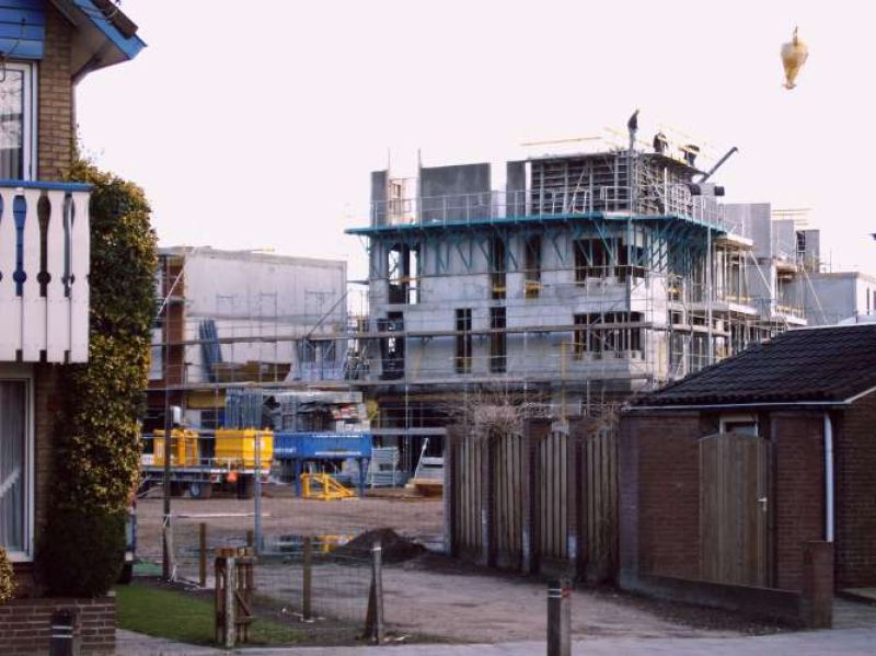 De bouw van de appartementen aan de Nieuwmarkt te Lichtenvoorde in 2008. De foto