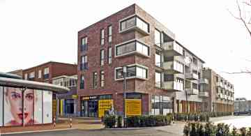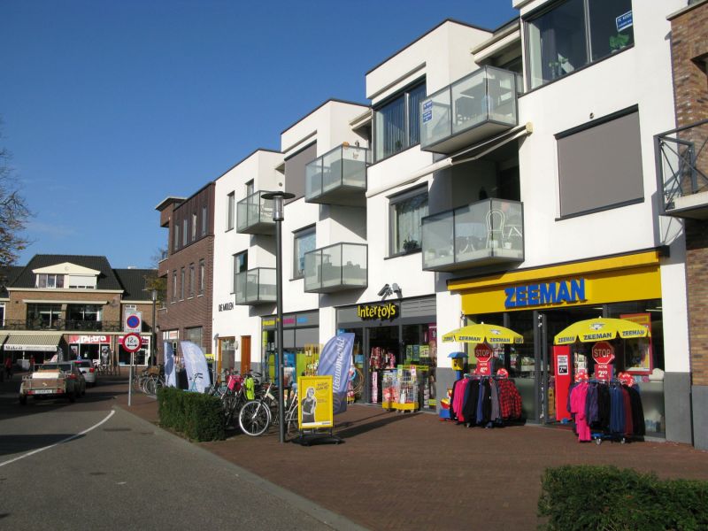 Op de vrijgekomen grond zijn winkelpanden met daarboven appartementen gebouwd.