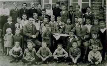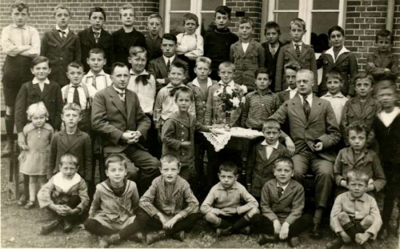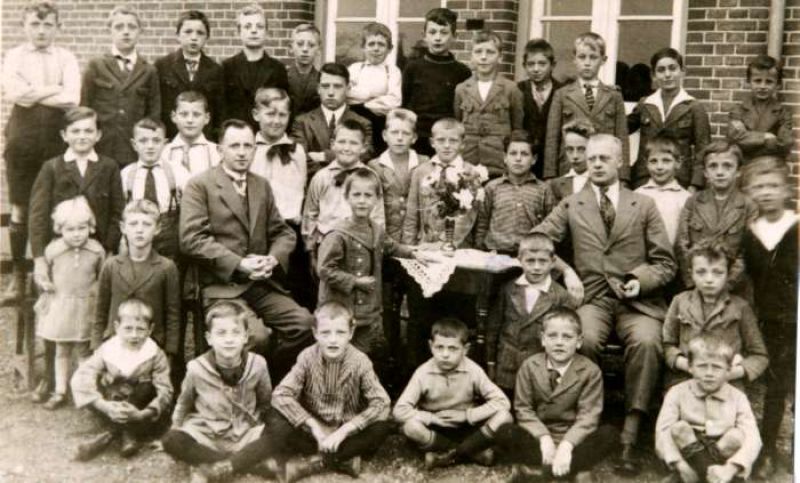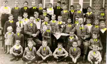 Schoolklas R.K. Jongensschool met meester Legro en meester Wouters (met hoed).Me