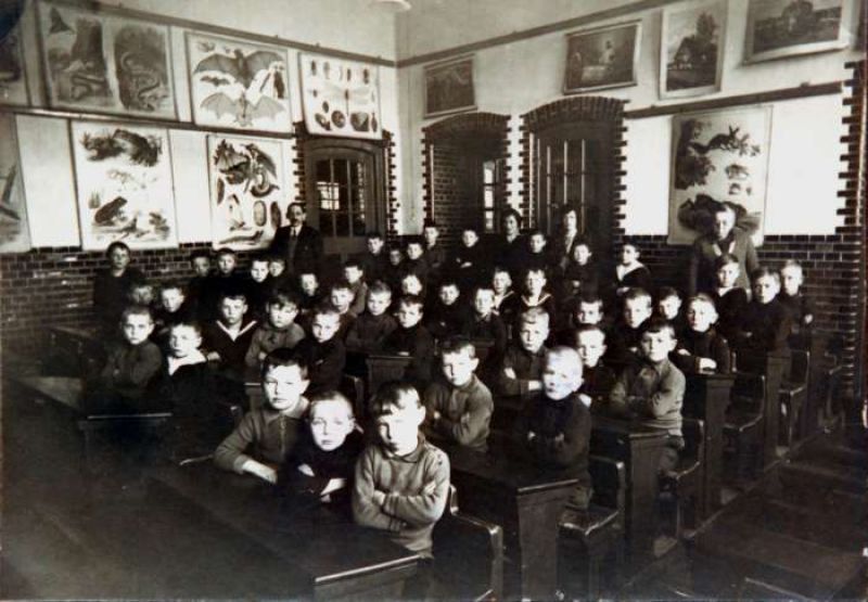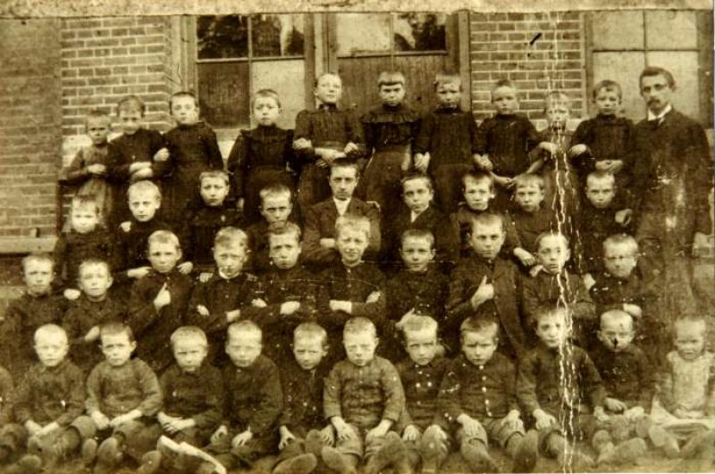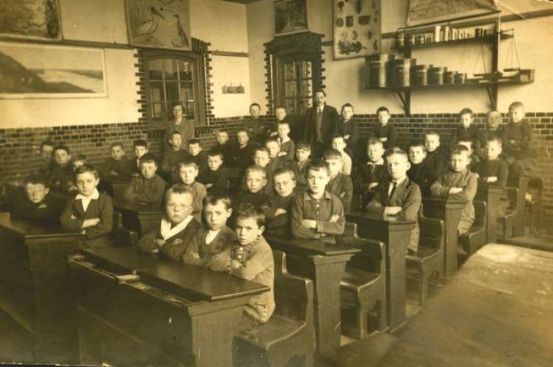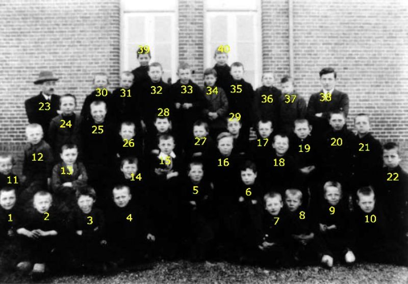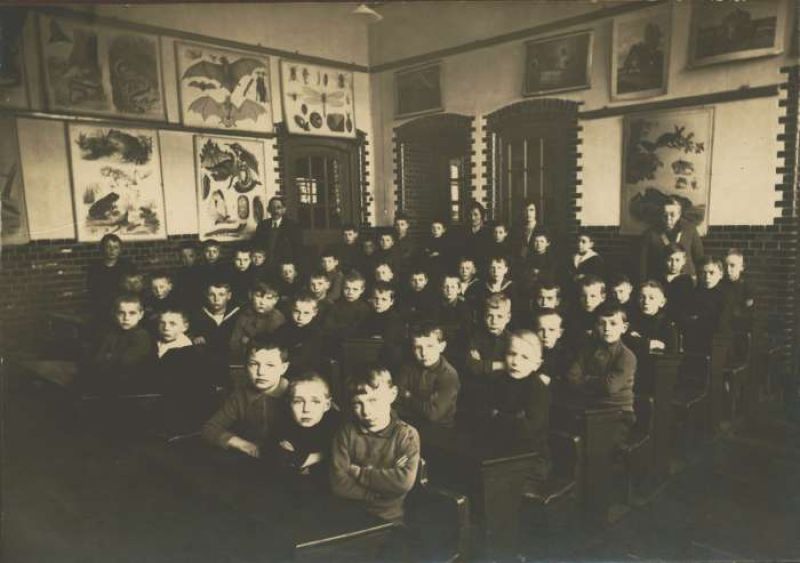 Schoolfoto R.K. Jongensschool uit ongeveer 1916. Hierbij een klasse foto van de