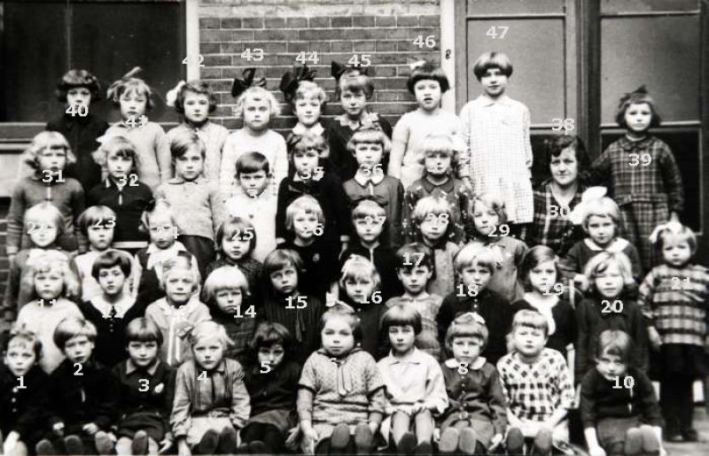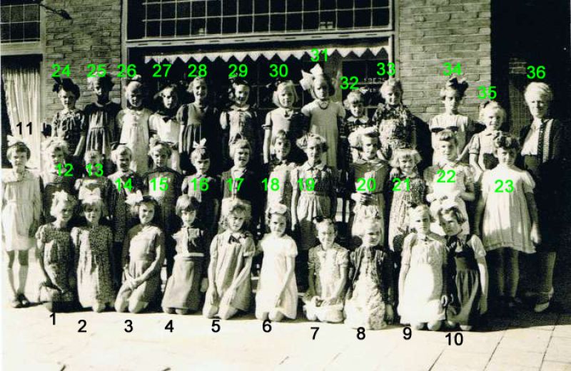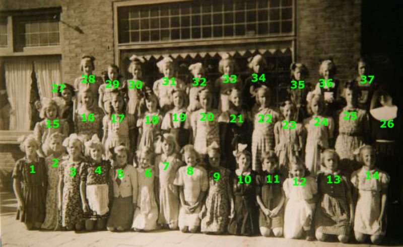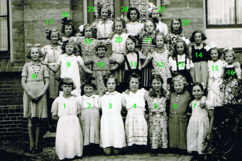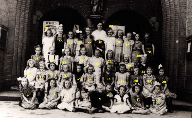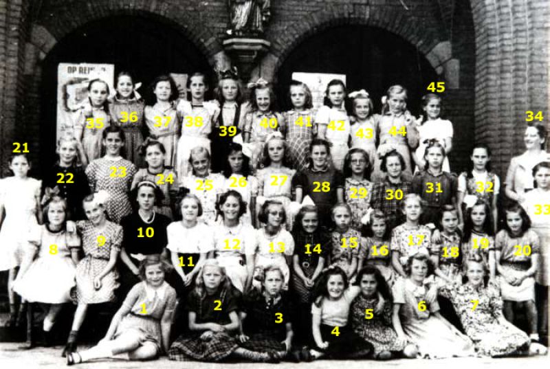 De klassen 5 en 6 van de r.-k. meisjesschool St.-Jozef in 1942 1. Betsy Marneth