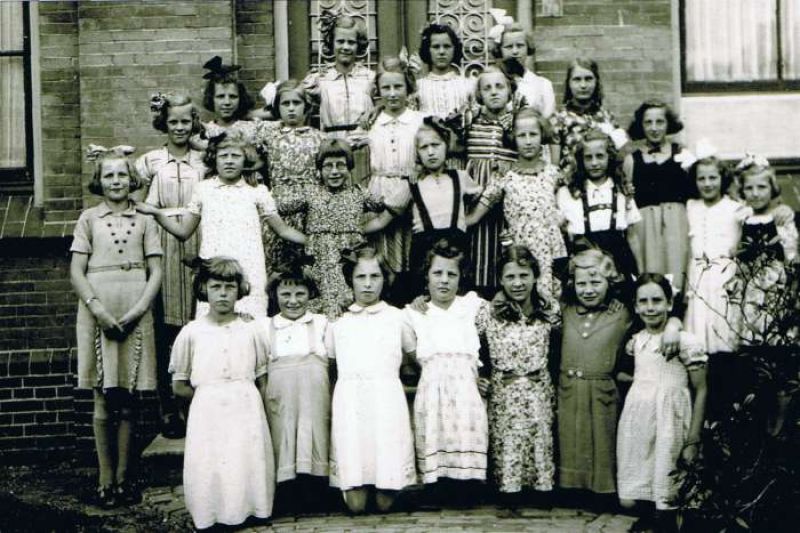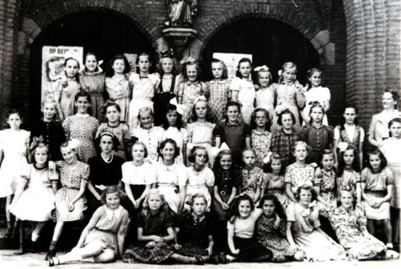 Een klas van de r.-k. meisjesschool St.-Jozef in 1944. Tijdens de oorlog werd in