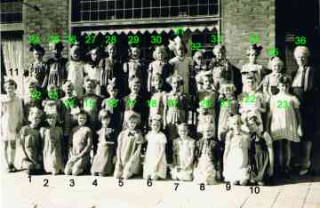 Groepsfoto van de eerste klas van de r.-k. meisjeschool St.-Jozef in 1933. 01 E