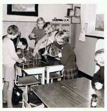 De 6e klas van de r.-k. meisjesschool St.-Jozef doet proeven