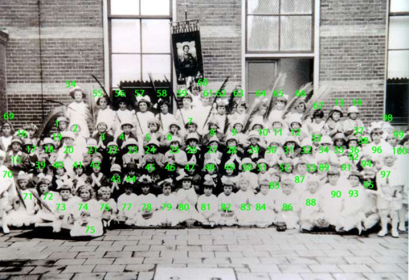 Een groepsfoto van de meisjesschool aan de Rapenburgsestraat. 01 Annie Oostrom