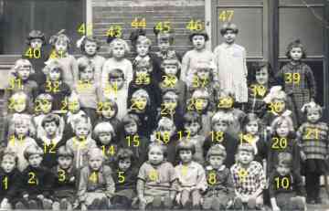 De eerste klas van de r.-k. meisjesschool St.-Jozef in 1933