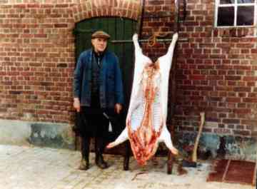 Opa Geerdinck ( Th.J.) huisslachter bij de familie Bolderdijk aan de Scheidingsw