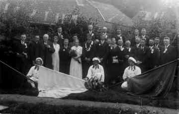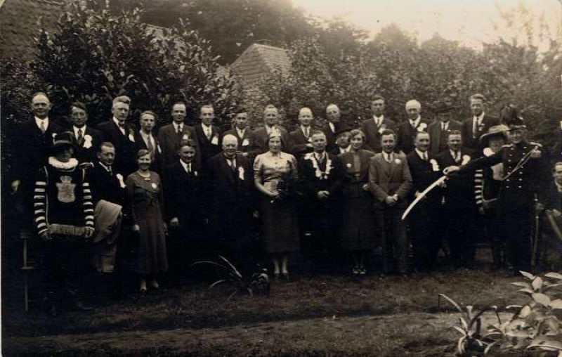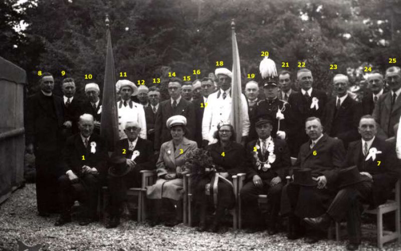 Het schutterskoningspaar met familie en kermisbestuur in 1936