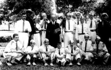 Het schuttersKoningspaar van de kermis in 1938 met het kermiscomité