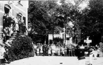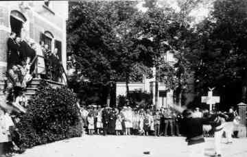 De huldiging van de nieuwe schutterskoning tijdens de kermis omstreeks 1926-1931