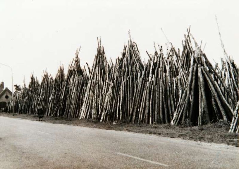 Tussen de Delstraat en de Varsseveldseweg was de houtopslag van het bedrijf, bestaande uit  groepen van tegen elkaar staande boomstammen. Deze houtopslag stond achter het bedrijfsgebouw, ongeveer ter hoogte van waar nu het Gele Park is.