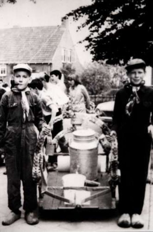 Kermis Vragender in 1965. Hier een kleine wagen uit de optocht voorstellende: "D